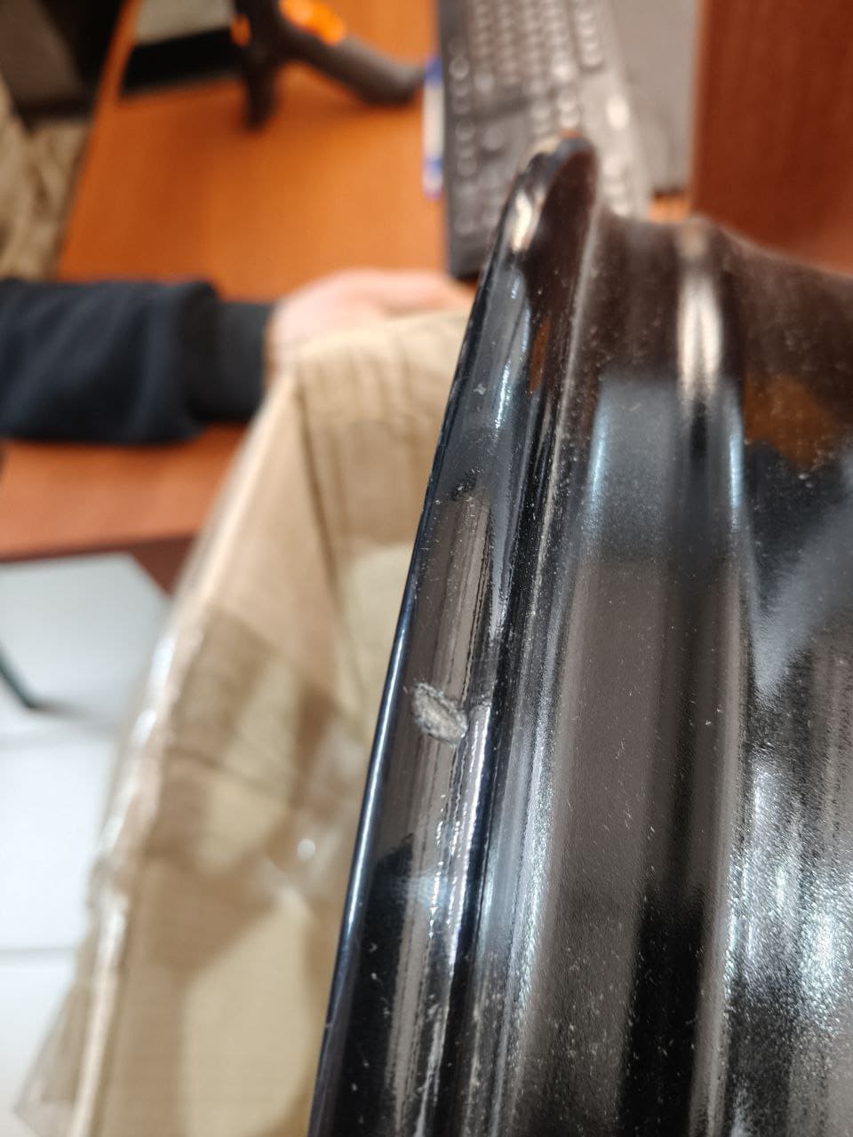 Диск новый. Есть небольшое замятие, потертости.