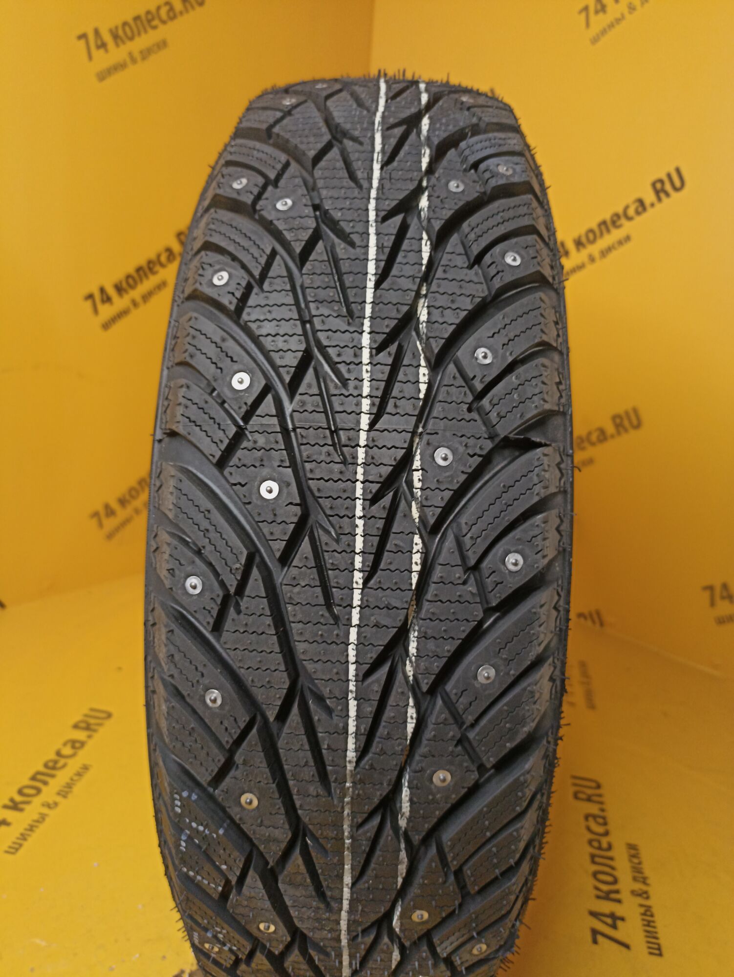 Шипованные шины с направленным рисунком протектора, улучшающим управляемость в зимних условиях. Большое количество шипов повышает сцепление на льду, тогда как увеличенная ширина канавок ускоряет отвод в стороны воды, снега и слякоти.
