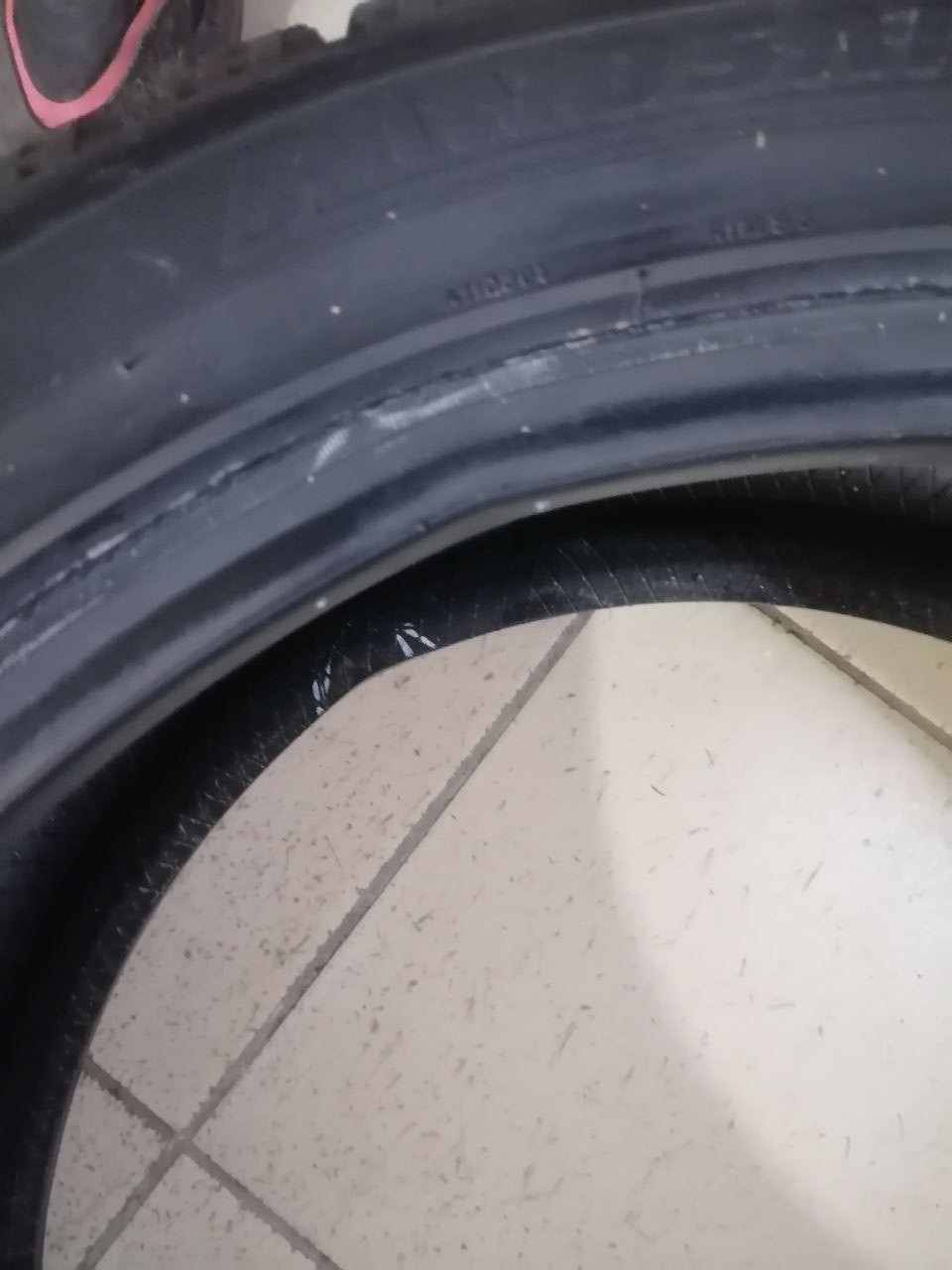 Шина новая. Незначительное замятие корда.