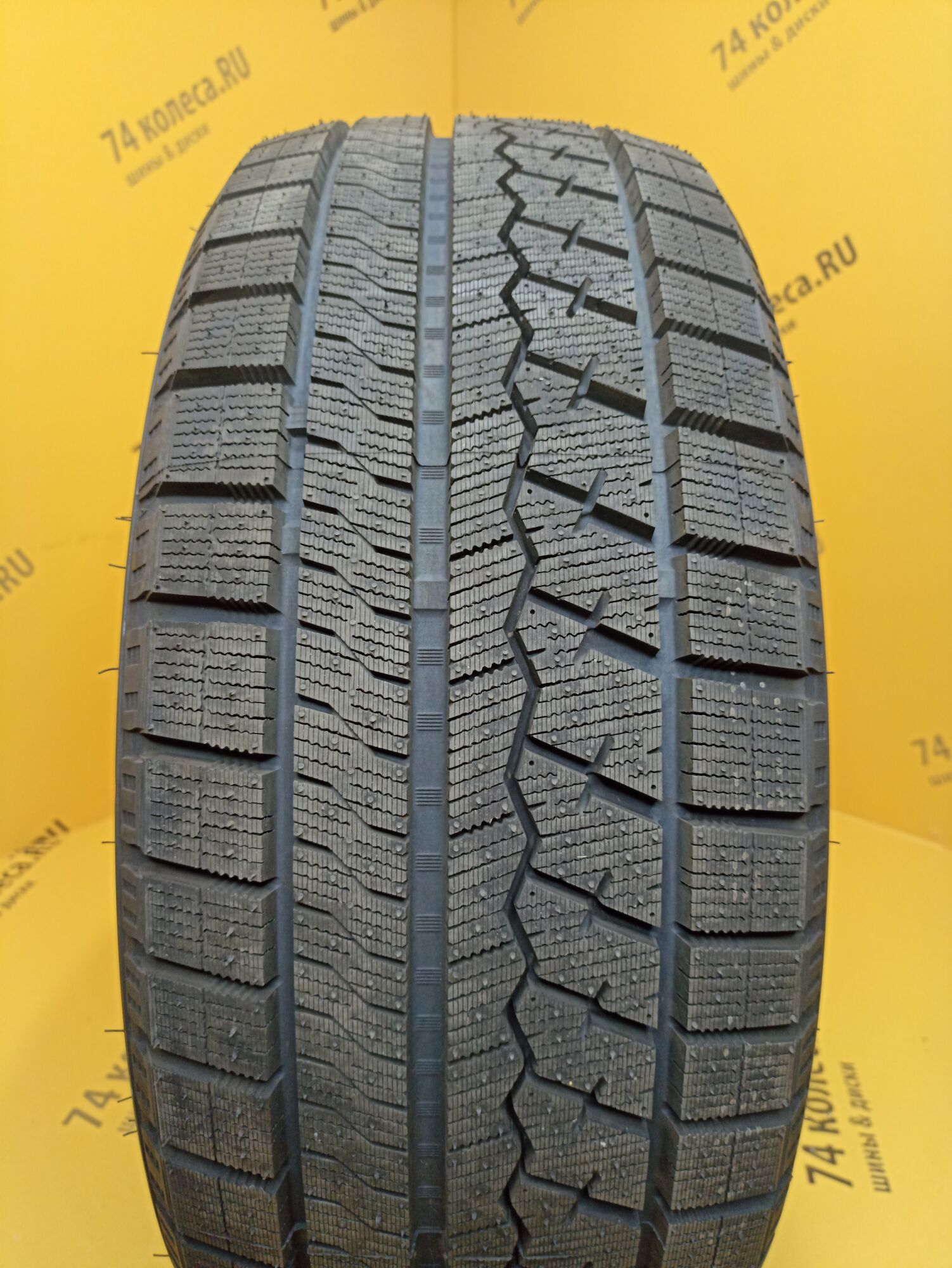 Несимметричный протекторный рисунок изобилует сцепными кромками, образуемыми многочисленными волнообразными ламелями. Плотно расположенные узкие прорези существенно сокращают протяженность тормозного пути на льду. Эффективность работы протектора на заснеженном покрытии обеспечивается высотой и большой площадью кромок блоков. Увеличенная ширина канавок позволяет шине интенсивно очищаться от снежных масс. Еще одной особенностью протектора являются крупные размеры плечевых блоков и их трапециевидный профиль. Такой дизайн повышает точность в управлении, устойчивость при маневрировании и препятствует неравномерному износу.
