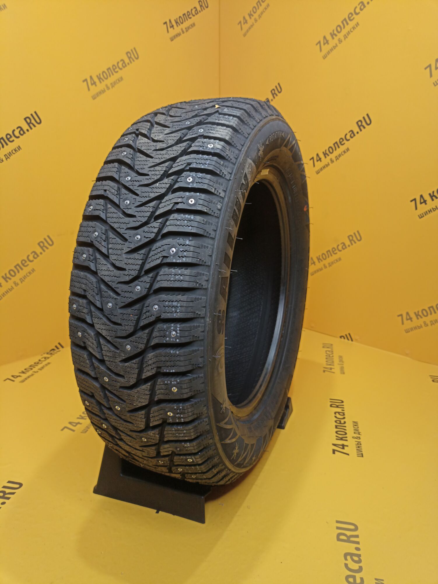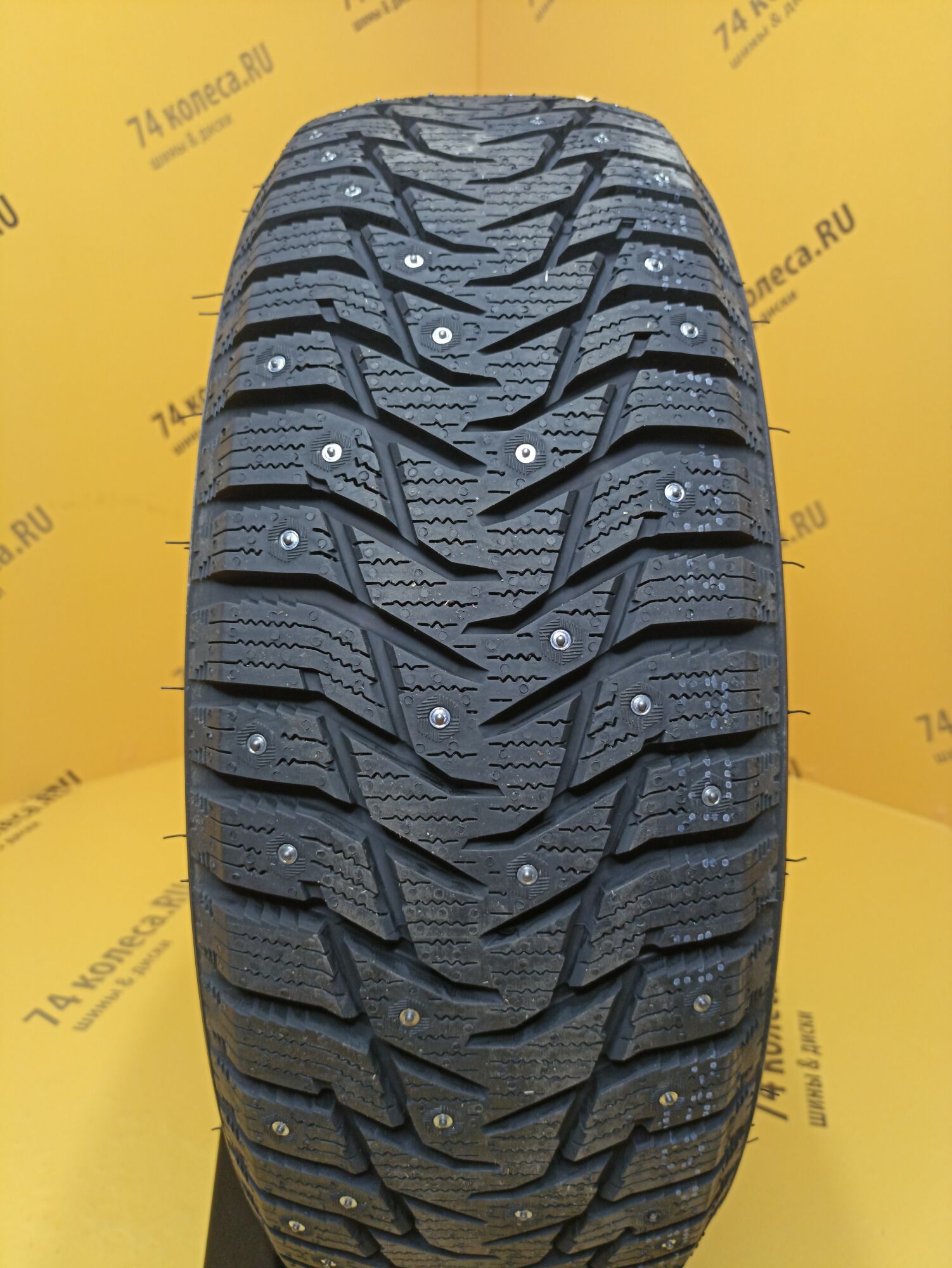 Одной из характерных особенностей шины являются шипы. Схема их расположения подобрана так, что ими образуется 8 непрерывных рядов. При этом численность этих элементов была увеличена. И, чтобы не нарушать европейские требования к степени их воздействия на дорогу, азиатские шинники поступили точно так же, как и многие другие «коллеги по цеху» уменьшили размер контактирующей с поверхностью твердосплавной вставки. Еще одним заимствованием стала организация специальных зон вокруг мест установки шипов для интенсивного отвода ледяной крошки. Особые выступы на протекторе измельчают ее, что позволяет шине сильнее вгрызаться в обледенелое покрытие.