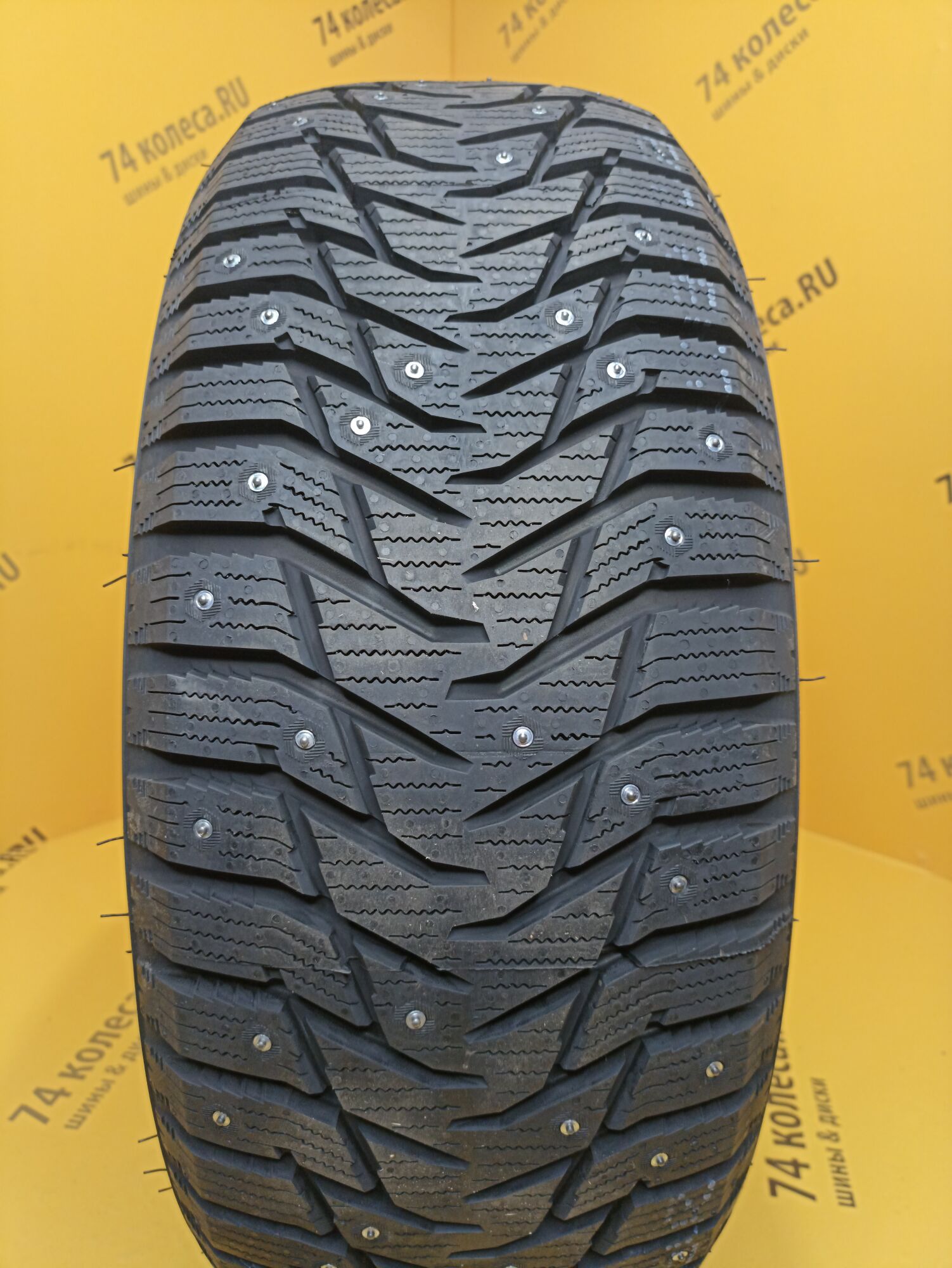 Одной из характерных особенностей шины являются шипы. Схема их расположения подобрана так, что ими образуется 8 непрерывных рядов. При этом численность этих элементов была увеличена. И, чтобы не нарушать европейские требования к степени их воздействия на дорогу, азиатские шинники поступили точно так же, как и многие другие «коллеги по цеху» уменьшили размер контактирующей с поверхностью твердосплавной вставки. Еще одним заимствованием стала организация специальных зон вокруг мест установки шипов для интенсивного отвода ледяной крошки. Особые выступы на протекторе измельчают ее, что позволяет шине сильнее вгрызаться в обледенелое покрытие.