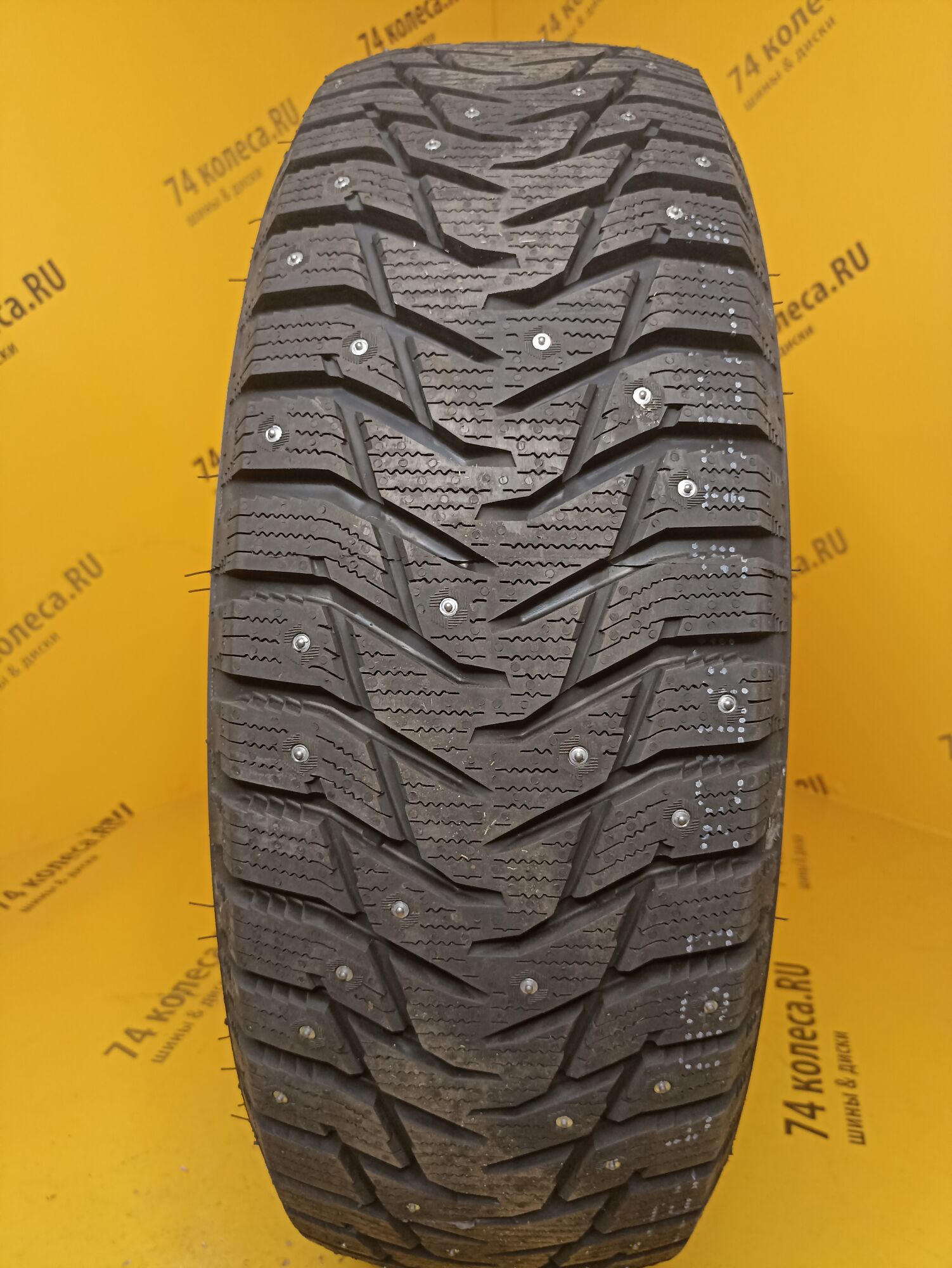 Одной из характерных особенностей шины являются шипы. Схема их расположения подобрана так, что ими образуется 8 непрерывных рядов. При этом численность этих элементов была увеличена. И, чтобы не нарушать европейские требования к степени их воздействия на дорогу, азиатские шинники поступили точно так же, как и многие другие «коллеги по цеху» уменьшили размер контактирующей с поверхностью твердосплавной вставки. Еще одним заимствованием стала организация специальных зон вокруг мест установки шипов для интенсивного отвода ледяной крошки. Особые выступы на протекторе измельчают ее, что позволяет шине сильнее вгрызаться в обледенелое покрытие.