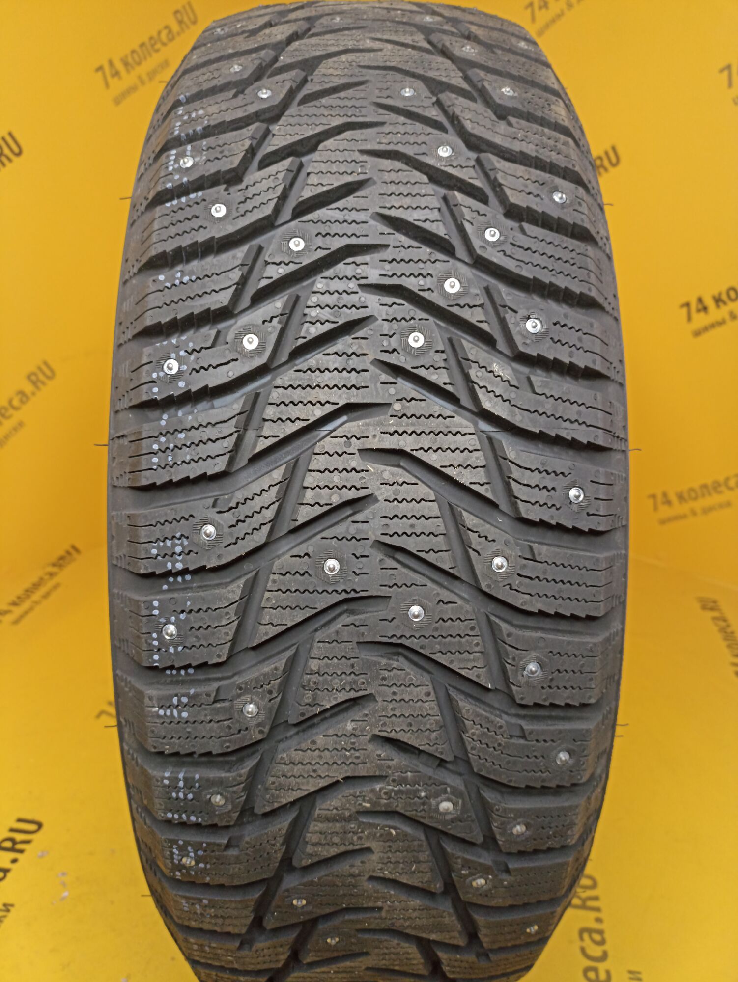 Одной из характерных особенностей шины являются шипы. Схема их расположения подобрана так, что ими образуется 8 непрерывных рядов. При этом численность этих элементов была увеличена. И, чтобы не нарушать европейские требования к степени их воздействия на дорогу, азиатские шинники поступили точно так же, как и многие другие «коллеги по цеху» уменьшили размер контактирующей с поверхностью твердосплавной вставки. Еще одним заимствованием стала организация специальных зон вокруг мест установки шипов для интенсивного отвода ледяной крошки. Особые выступы на протекторе измельчают ее, что позволяет шине сильнее вгрызаться в обледенелое покрытие.