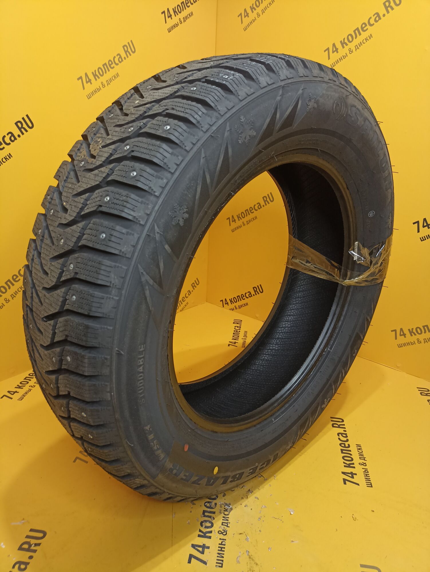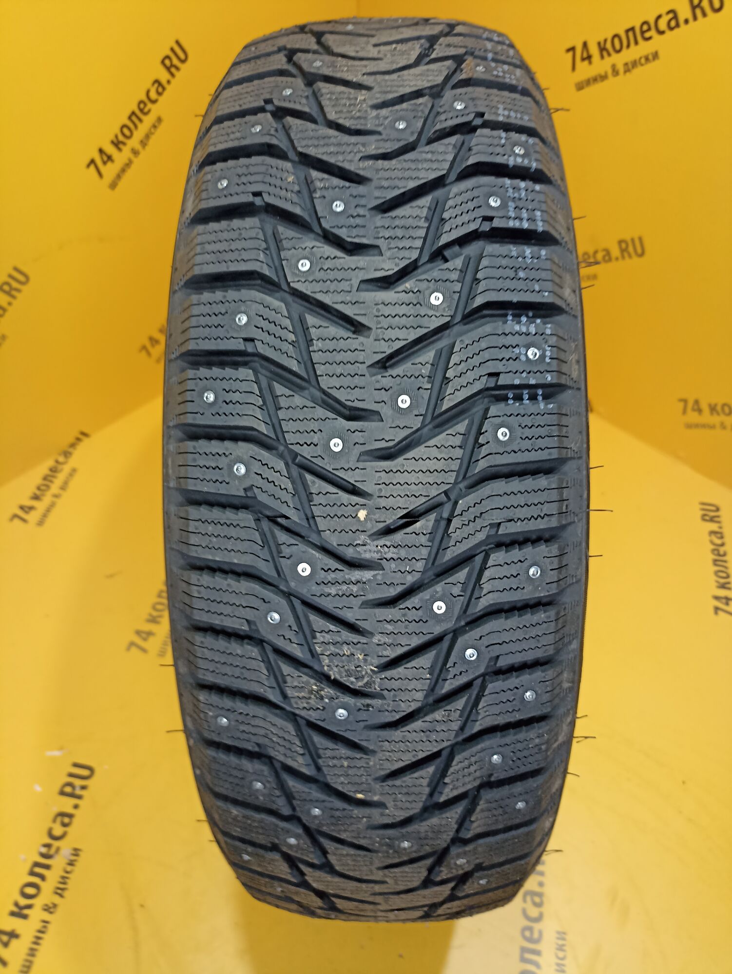 Одной из характерных особенностей шины являются шипы. Схема их расположения подобрана так, что ими образуется 8 непрерывных рядов. При этом численность этих элементов была увеличена. И, чтобы не нарушать европейские требования к степени их воздействия на дорогу, азиатские шинники поступили точно так же, как и многие другие «коллеги по цеху» уменьшили размер контактирующей с поверхностью твердосплавной вставки. Еще одним заимствованием стала организация специальных зон вокруг мест установки шипов для интенсивного отвода ледяной крошки. Особые выступы на протекторе измельчают ее, что позволяет шине сильнее вгрызаться в обледенелое покрытие.