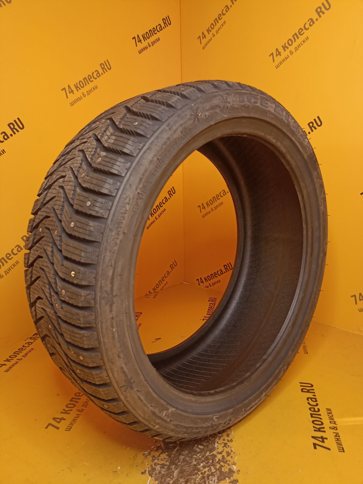 Одной из характерных особенностей шины являются шипы. Схема их расположения подобрана так, что ими образуется 8 непрерывных рядов. При этом численность этих элементов была увеличена. И, чтобы не нарушать европейские требования к степени их воздействия на дорогу, азиатские шинники поступили точно так же, как и многие другие «коллеги по цеху» уменьшили размер контактирующей с поверхностью твердосплавной вставки. Еще одним заимствованием стала организация специальных зон вокруг мест установки шипов для интенсивного отвода ледяной крошки. Особые выступы на протекторе измельчают ее, что позволяет шине сильнее вгрызаться в обледенелое покрытие.