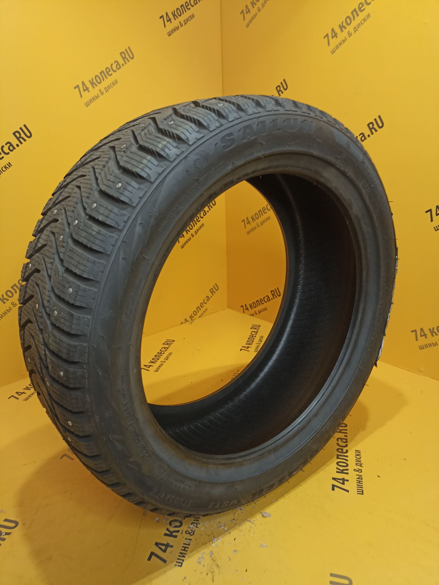 Одной из характерных особенностей шины являются шипы. Схема их расположения подобрана так, что ими образуется 8 непрерывных рядов. При этом численность этих элементов была увеличена. И, чтобы не нарушать европейские требования к степени их воздействия на дорогу, азиатские шинники поступили точно так же, как и многие другие «коллеги по цеху» уменьшили размер контактирующей с поверхностью твердосплавной вставки. Еще одним заимствованием стала организация специальных зон вокруг мест установки шипов для интенсивного отвода ледяной крошки. Особые выступы на протекторе измельчают ее, что позволяет шине сильнее вгрызаться в обледенелое покрытие.