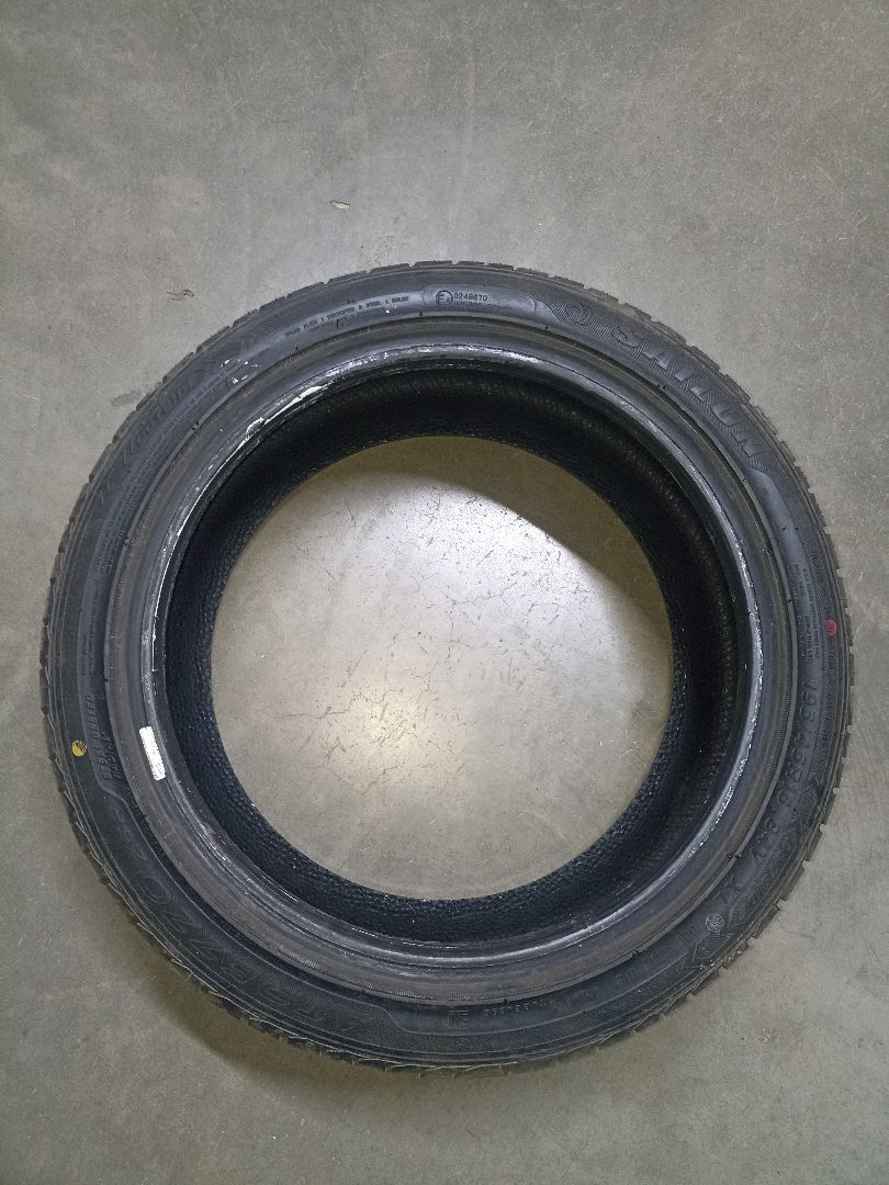 Шины были в эксплуатации.Поступили со слегка искревленным кордом.