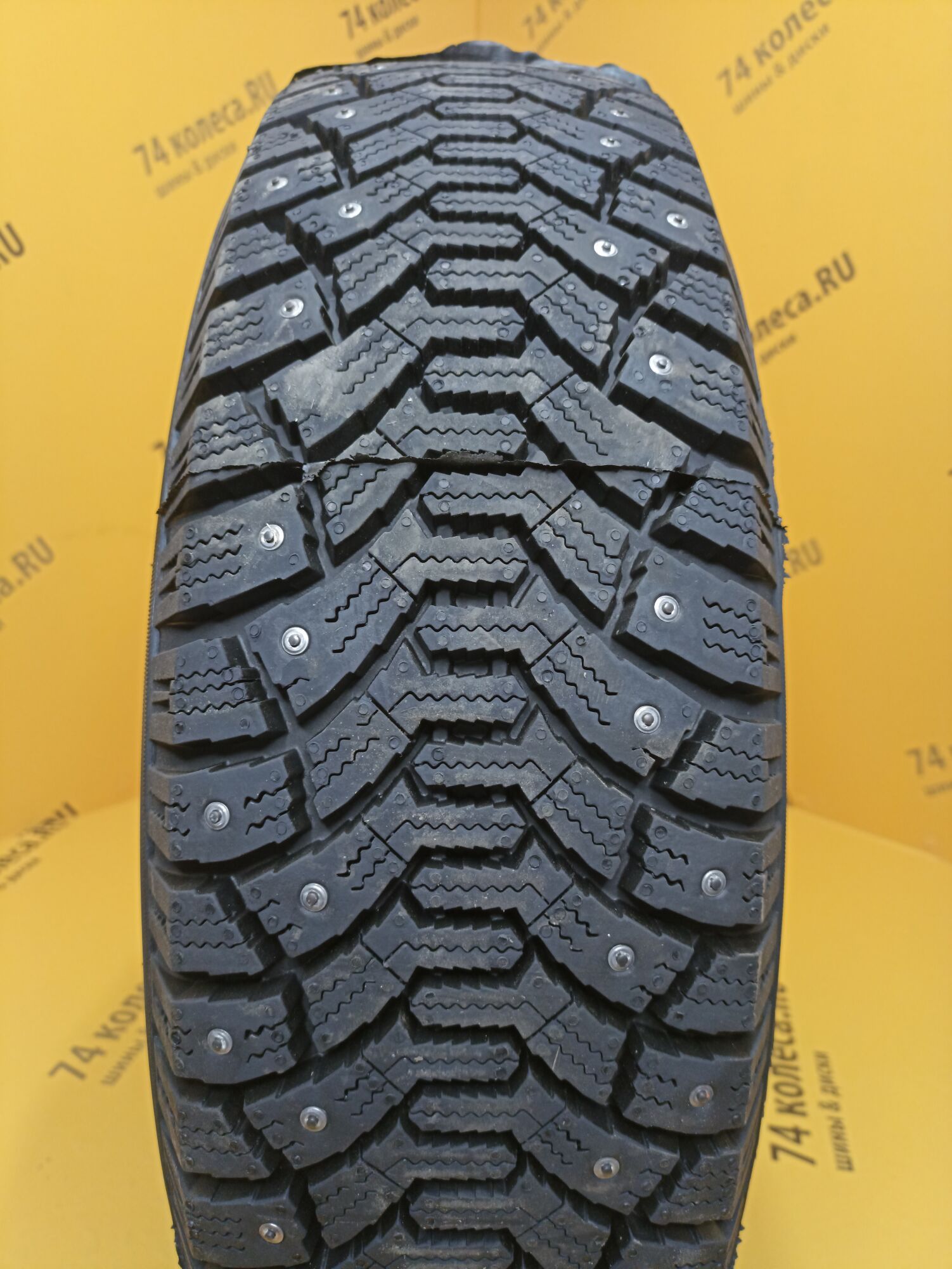 Наличие шипов. Ошиповка расположена в два ряда и охватывает максимальную площадь колеса. Шипы надежно закреплены в гнездах и остаются на своих местах в течение всего срока эксплуатации покрышек.