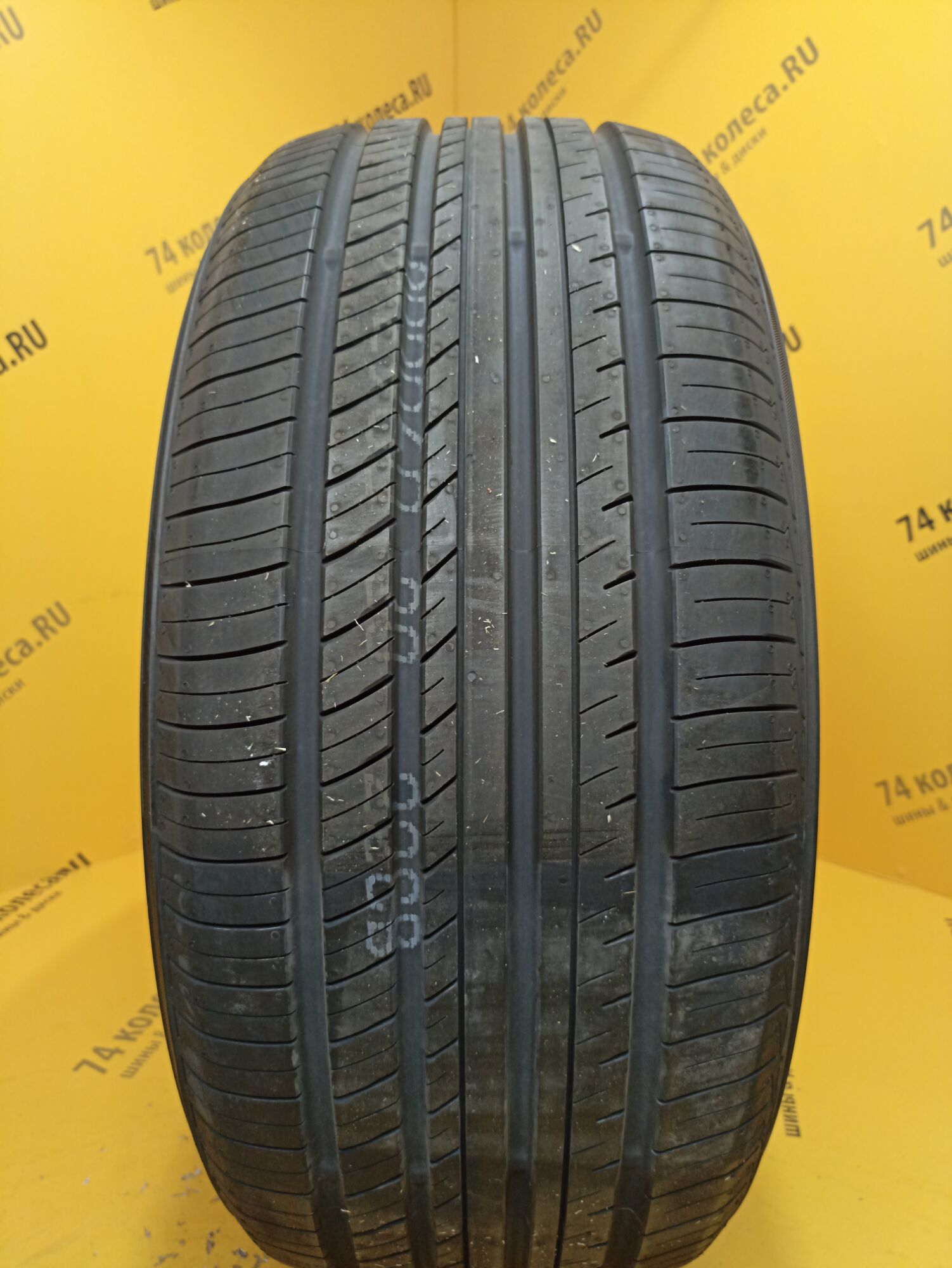 Протекторный рисунок имеет несимметричное расположение элементов. Одним из них является сдвоенное продольное ребро, смещенное к наружной стороне шины. Оно за счет своей устойчивости к деформации повышает курсовую стабильность и точность в управлении на большой скорости, а при динамичном маневрировании взаимодействует с плечевыми блоками, добавляя устойчивости.
