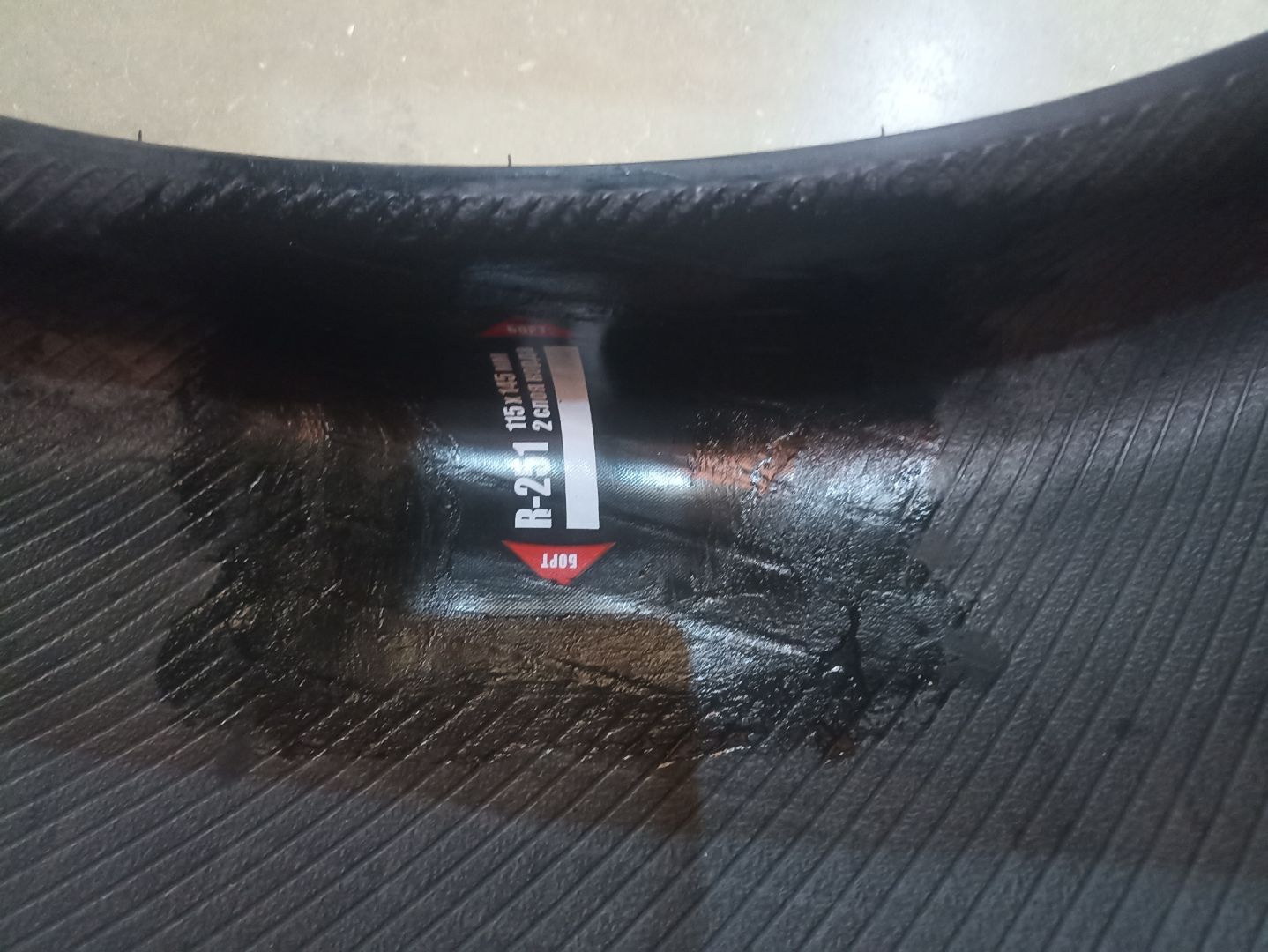 Шина новая, в эксплуатации не была, не забортовывалась. Отремонтирован боковой прокол.